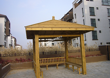 防腐木涼亭解決了傳統(tǒng)戶(hù)外建筑施工空間大,環(huán)境破壞嚴(yán)重的弊端,煙臺(tái)防腐木涼亭施工占用....